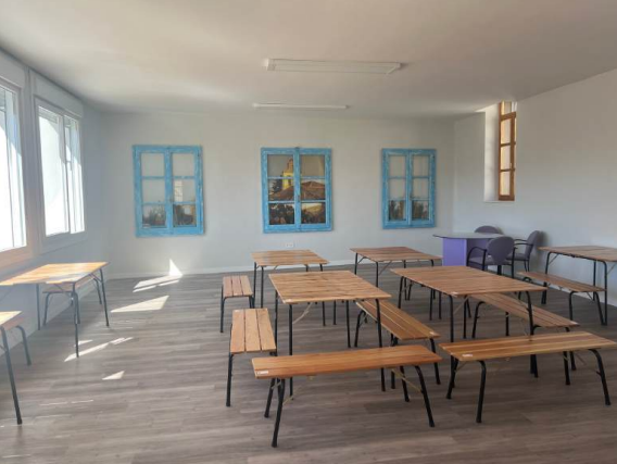 Como parte de la restauración del patrimonio local, se renovaron las antiguas ventanas de la escuela, que habían sido reemplazadas por ventanas climatizadas modernas. A pesar de su deterioro, José Antonio Marinero Morales rescató y restauró estas ventanas, reemplazando bisagras, lijando y pintándolas en un fresco tono azul cielo. Ahora decoran las paredes de la escuela, aportando un toque histórico renovado.